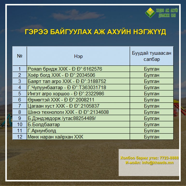 Дараах тариалан эрхлэгчид 2021.12.20-ны дотор гэрээгээ байгуулна уу