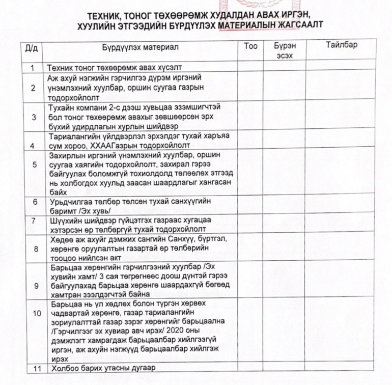 2021 оны хаврын дэмжлэгт хамрагдаж байгаа иргэн, хуулийн этгээд дараах материалыг бүрдүүлж гэрээ байгуулна уу.