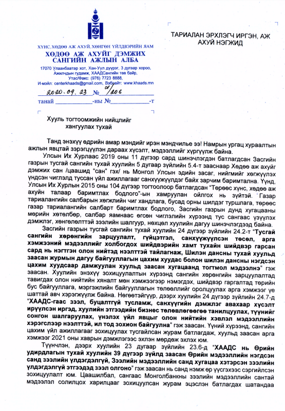 Тариалан эрхлэгч иргэд, аж ахуй нэгжүүд хууль тогтоомжийн нийцлийг хангахад анхаарч ажиллана уу.