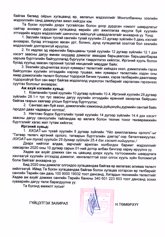 ЗӨВЛӨХ ҮЙЛЧИЛГЭЭНИЙ ТУХАЙ ЗАРЛАЛ