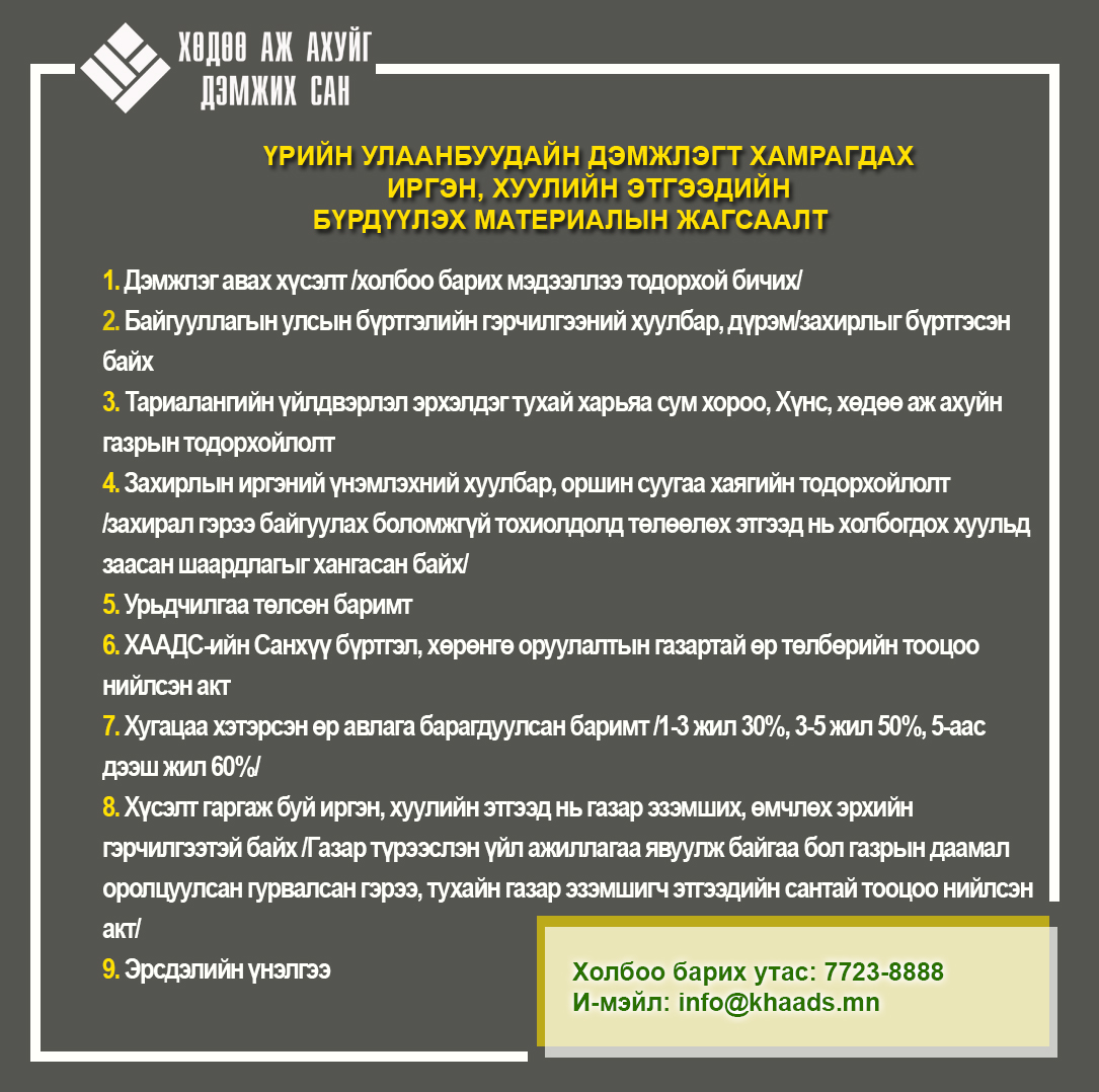Та албан хүсэлтээ Хөдөө аж ахуйг дэмжих сангийн төв байранд өөрийн биеэр авчирч өгөх, аль эсвэл info@khaads.mn и-мэйл хаягаар илгээх боломжтой.